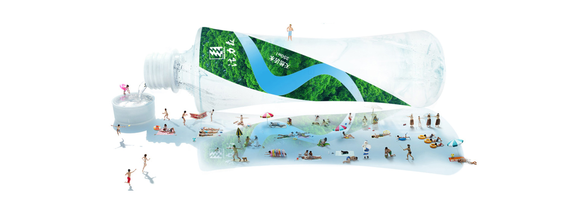 將綠色的森林填充于圖案之中,再貫穿與樹木輪廓相切合的飛瀉直下的瀑布?;盍ι膌ogo活靈活現地呈現出來了。在這個logo上,“森林之水,活力之源”這個概念得到了完美的體現。