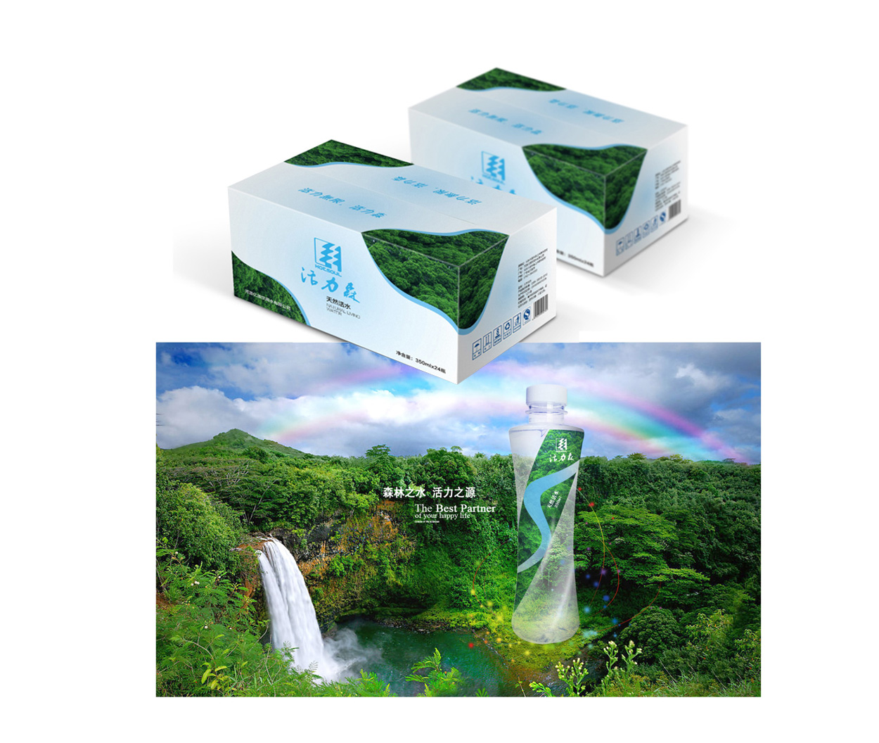 產品包裝,是消費者對產品的視覺體驗,是產品個性的直接和主要傳遞者,是企業(yè)形象定位的直接表現,好的包裝設計還是企業(yè)創(chuàng)造利潤的重要手段之一。包裝,是品牌在終端與消費者的第一個渠道。如何在活力森的logo和包裝上體現出“森林之水,活力之源”的概念,向消費者傳達活水的好處,以達到促進銷售目的呢?