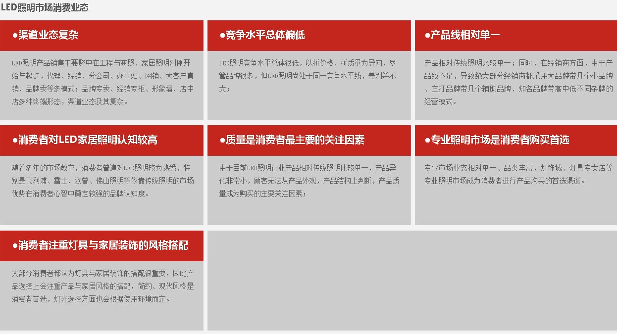 沒(méi)有調(diào)查就沒(méi)有發(fā)言權(quán)。為了打造江山的品牌之路,中擂江山項(xiàng)目組展開(kāi)了深入有效的市場(chǎng)調(diào)查。經(jīng)過(guò)對(duì)樣板市場(chǎng)的走訪(fǎng)、經(jīng)銷(xiāo)商和消費(fèi)者的訪(fǎng)問(wèn)調(diào)研,我們發(fā)現(xiàn)LED家居照明市場(chǎng)有著巨大的市場(chǎng)發(fā)展空間和潛力,是正處于迅速發(fā)展期的朝陽(yáng)產(chǎn)業(yè),我們找到了實(shí)現(xiàn)夢(mèng)想的機(jī)會(huì)之門(mén)。