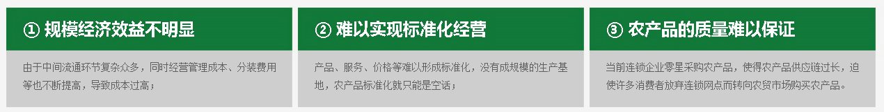 根據發(fā)達國家的經驗,連鎖經營必將成為農產品零售的主渠道,目前我國生鮮農產品連鎖經營存在著三大主要問題。