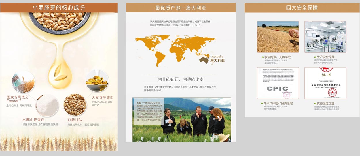 昆士蘭大學(xué)生物學(xué)專家Samuel,在野外調(diào)查項(xiàng)目中發(fā)現(xiàn)生活在小麥產(chǎn)區(qū)的小袋鼠成活率要比其他地區(qū)大。他對這個(gè)現(xiàn)象感到十分有趣,在其后多年的調(diào)查研究過程當(dāng)中,他發(fā)現(xiàn)生活在小麥產(chǎn)區(qū)的袋鼠媽媽在懷孕的時(shí)候會摘吃小麥。于是對植被進(jìn)行一系列的研究,進(jìn)而發(fā)現(xiàn)小麥中含有大量葉酸等成分對胎兒的存活和成長都非常有益,而且小麥對孕期女性有補(bǔ)水保濕、防衰老、抗沮喪等功效,而小麥胚芽的功效比小麥更勝一籌。于是,孕婦專用護(hù)膚品“袋鼠媽媽”誕生了。