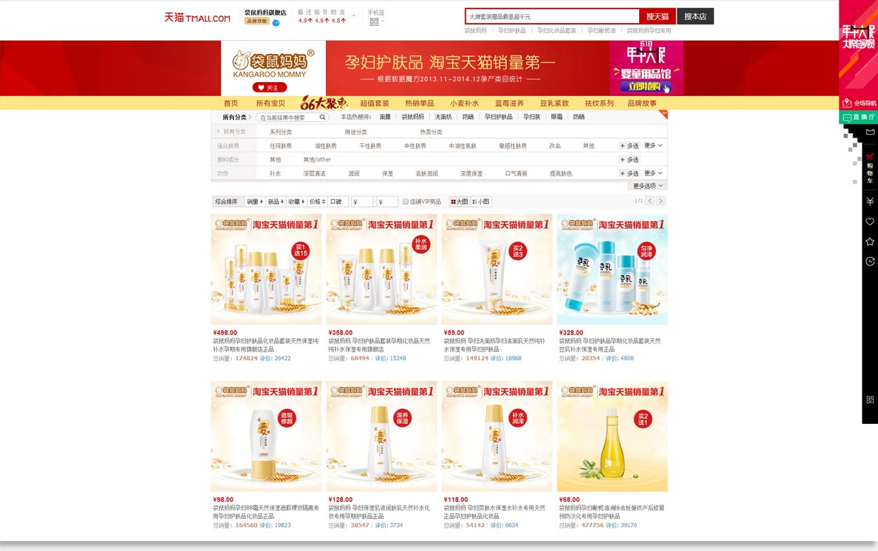 在此次策劃中,中擂策劃項(xiàng)目組根據(jù)目標(biāo)消費(fèi)者需求,緊緊圍繞“安全”訴求進(jìn)行品牌建設(shè),并緊跟時(shí)代潮流搭建天貓旗艦店,最終用質(zhì)量說話,贏得了良好的口碑,成為孕婦護(hù)膚銷量領(lǐng)先品牌,領(lǐng)跑孕期護(hù)膚品牌!相信袋鼠媽媽的品牌之路才剛剛開始,以后定會更輝煌!