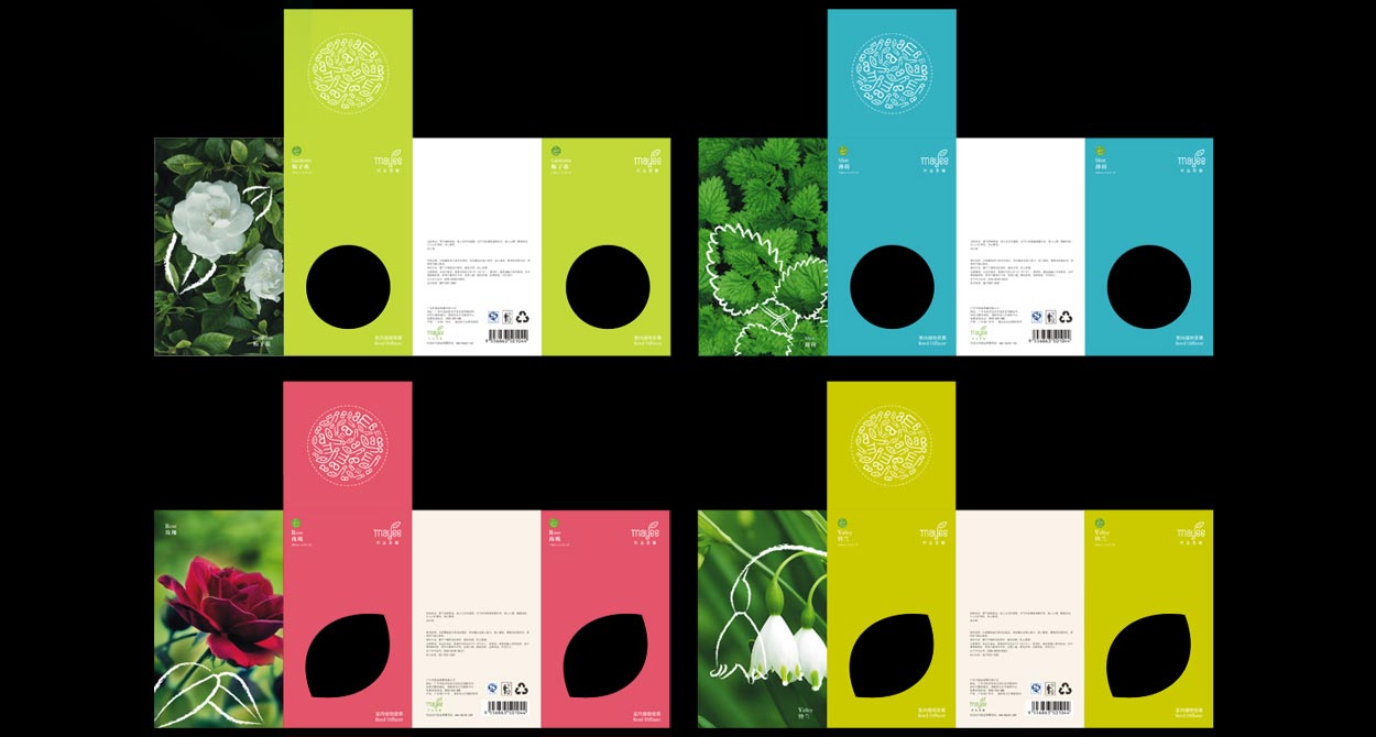 所謂“1+4+N”,就是1個統(tǒng)一標志,4個不同系列,N種個性化表現(xiàn)。“1+4+N”的策略不僅幫助美益解決了如何快速識別各種香薰產(chǎn)品的問題,同時也很好的體現(xiàn)了品牌的共性與個性,讓美益在統(tǒng)一的理念下發(fā)揮創(chuàng)意個性,達到強烈的視覺傳播效應。在單品的設(shè)計上,我們配合以原生植物的圖樣進行包裝設(shè)計,將產(chǎn)品的個性淋漓盡致的完美表達,讓人耳目一新。