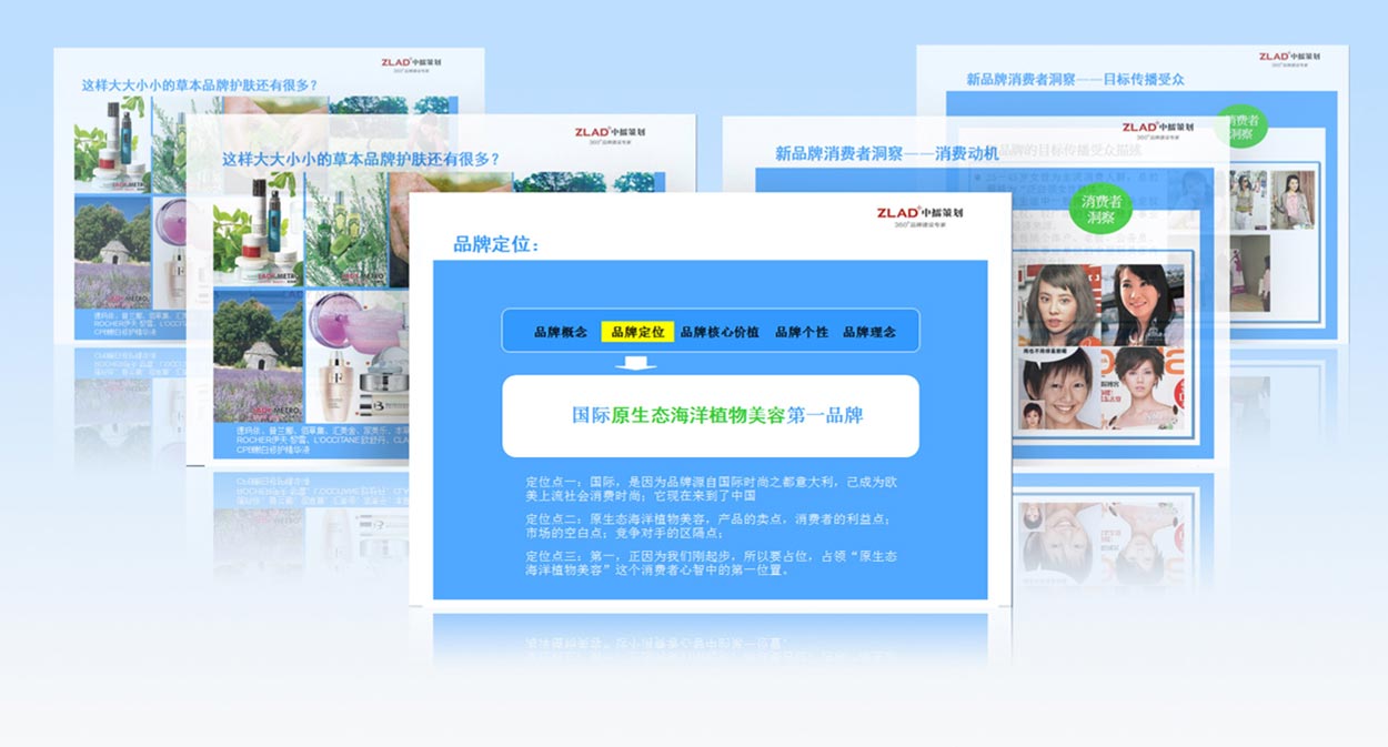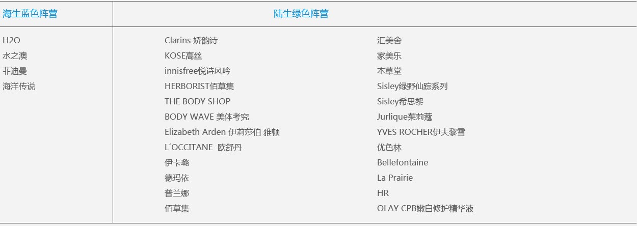 綜觀現(xiàn)在市面上的化妝品品牌打的草本牌都是以陸生植物為主,能不能創(chuàng)造一種新的概念,以海洋植物做為一個差異化的點呢?如果我們將陸地稱之為“綠色”,將海洋稱之為“藍色”的話,就可以將當前天然化妝品品牌劃分為兩個陣營:綠色草本美容陣營、藍色植物美容陣營。當消費者在選擇時就很容易將我們與其它品牌的區(qū)別開。