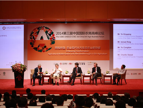 5月17日,2015第四屆中國國際農(nóng)商高峰論壇在中歐國際工商學(xué)院北京校區(qū)圓滿舉辦。本次論壇主題為“跨界:開啟現(xiàn)代農(nóng)業(yè)的新時代”,聚焦中國農(nóng)業(yè)面臨的投資機遇和“互聯(lián)網(wǎng)+農(nóng)業(yè)”催生的新形態(tài)、新業(yè)態(tài),并就三大議題進行討論和交流:一是工商資本灌溉現(xiàn)代農(nóng)業(yè),塑造新格局;二是現(xiàn)代農(nóng)業(yè)深耕互聯(lián)網(wǎng),再造新基因;三是荷蘭奇跡:中國現(xiàn)代農(nóng)業(yè)的他山之石。論壇遍邀全球農(nóng)商領(lǐng)域富有遠見卓識的政府領(lǐng)袖與專家學(xué)者、行業(yè)領(lǐng)軍人物及轉(zhuǎn)型拓進者,從各個層面深入探討和分享,共話“新常態(tài)”下,中國現(xiàn)代農(nóng)業(yè)如何擁抱互聯(lián)網(wǎng)、迎接新時代。